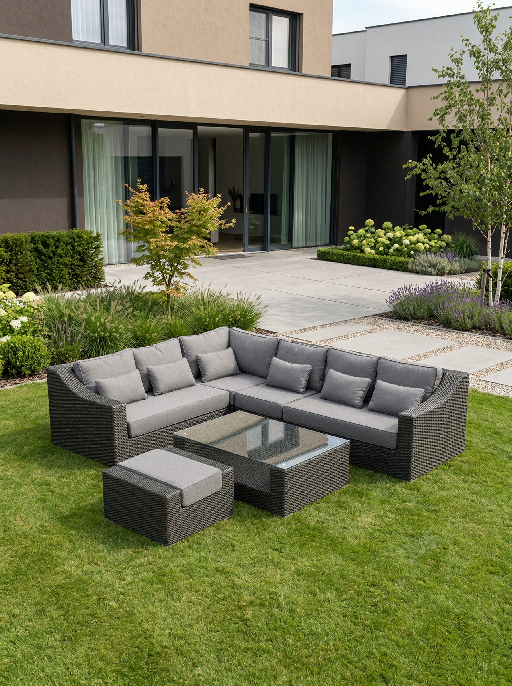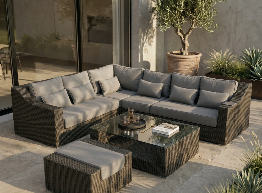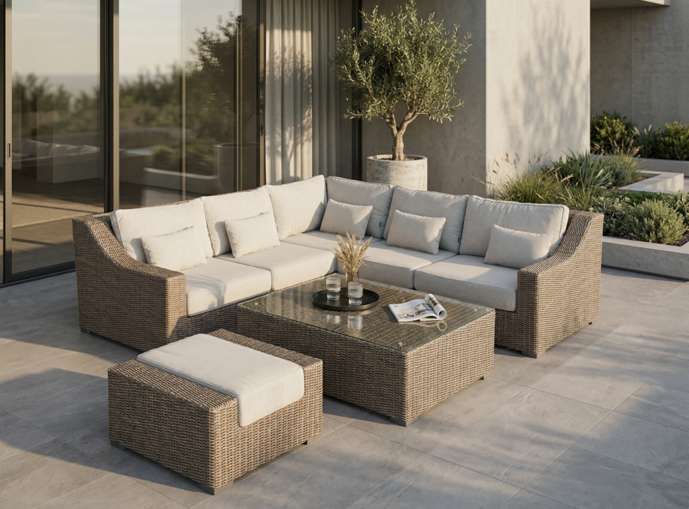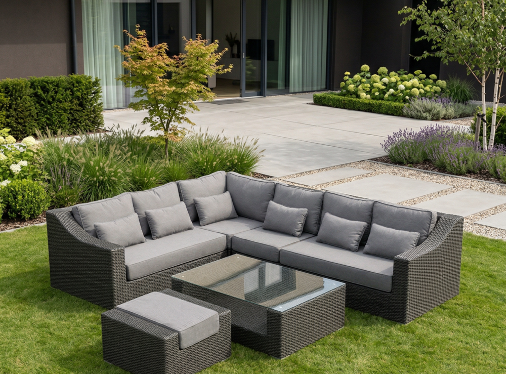 | Komplekto dalys | Dešininė dalis, Kairinė dalis, Kampinė dalis, Pufas, Stalas, Vidurinė dalis |