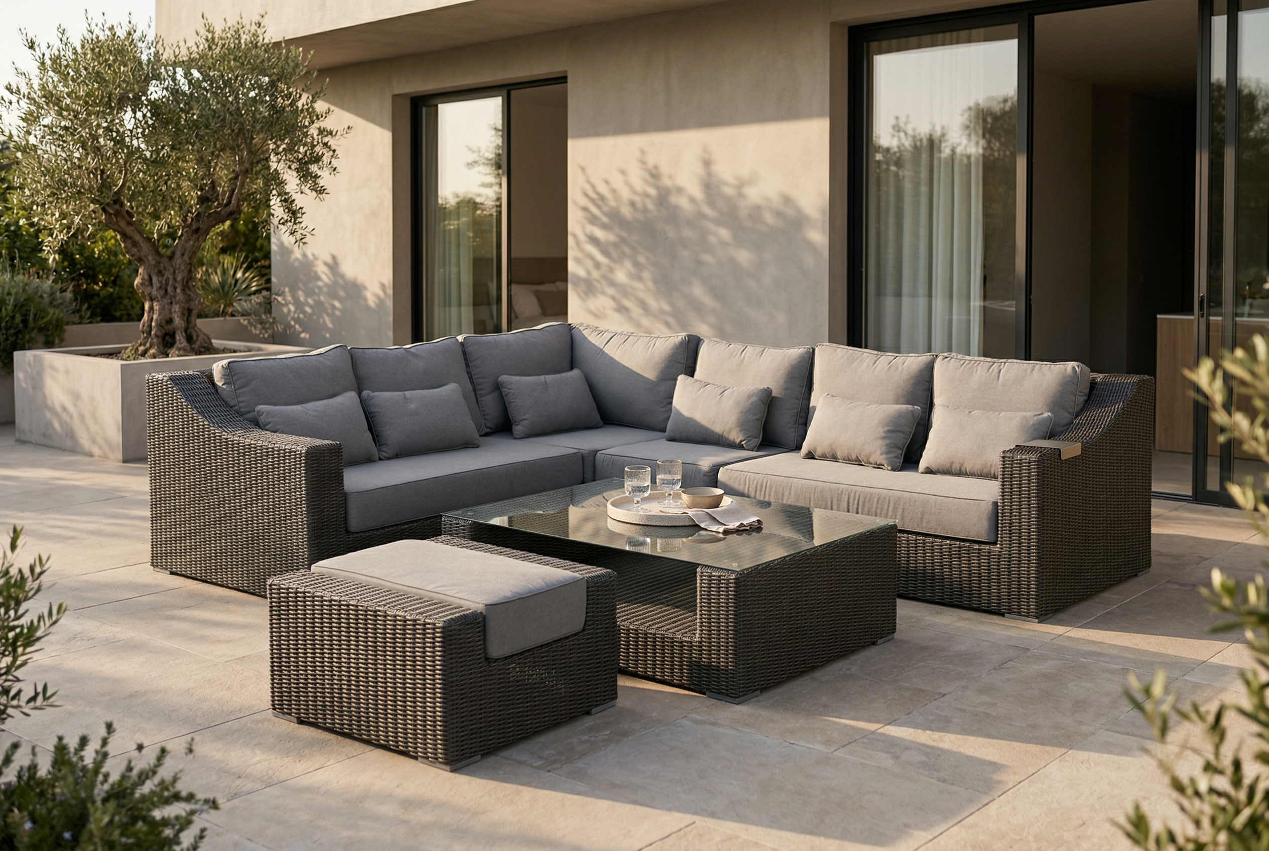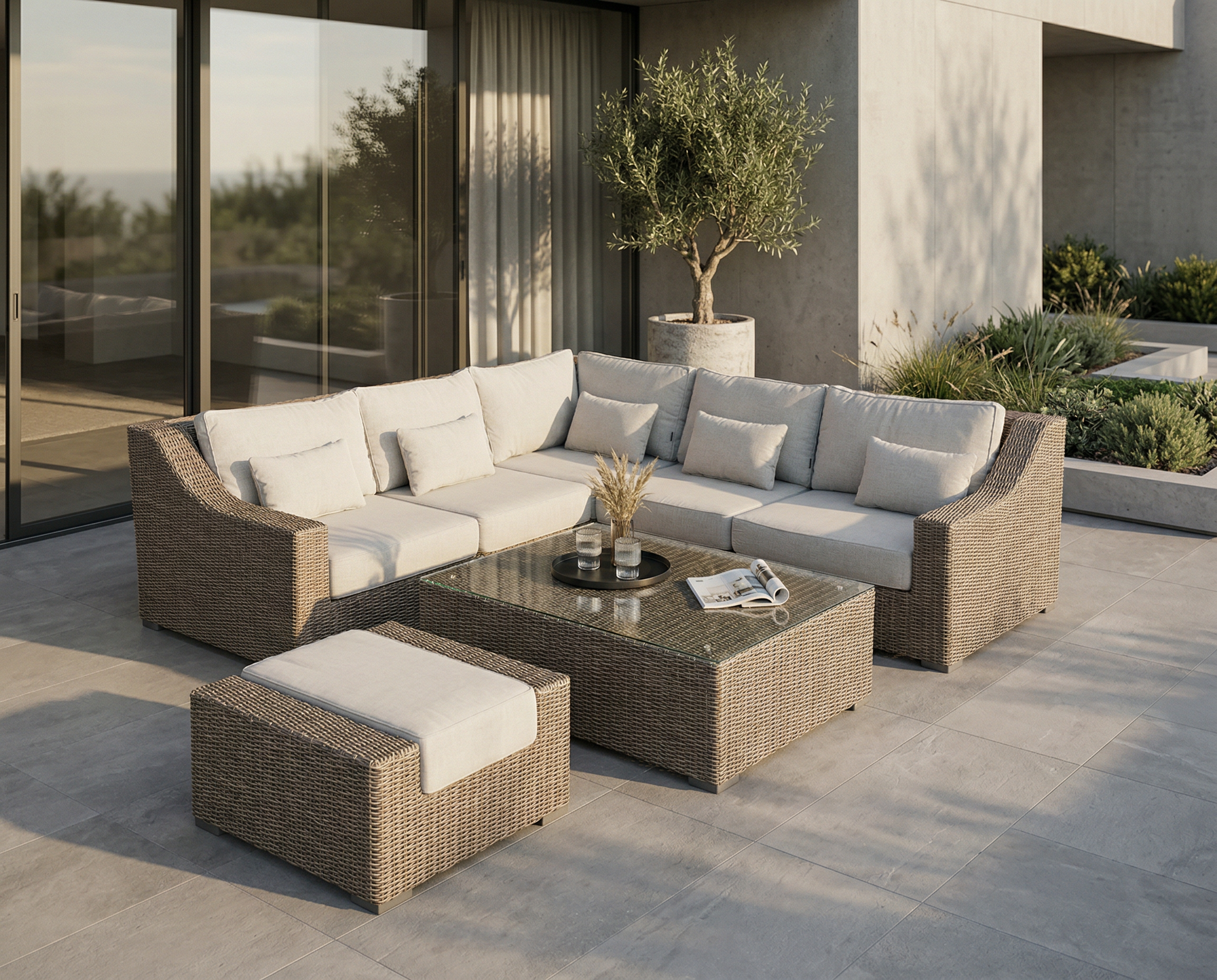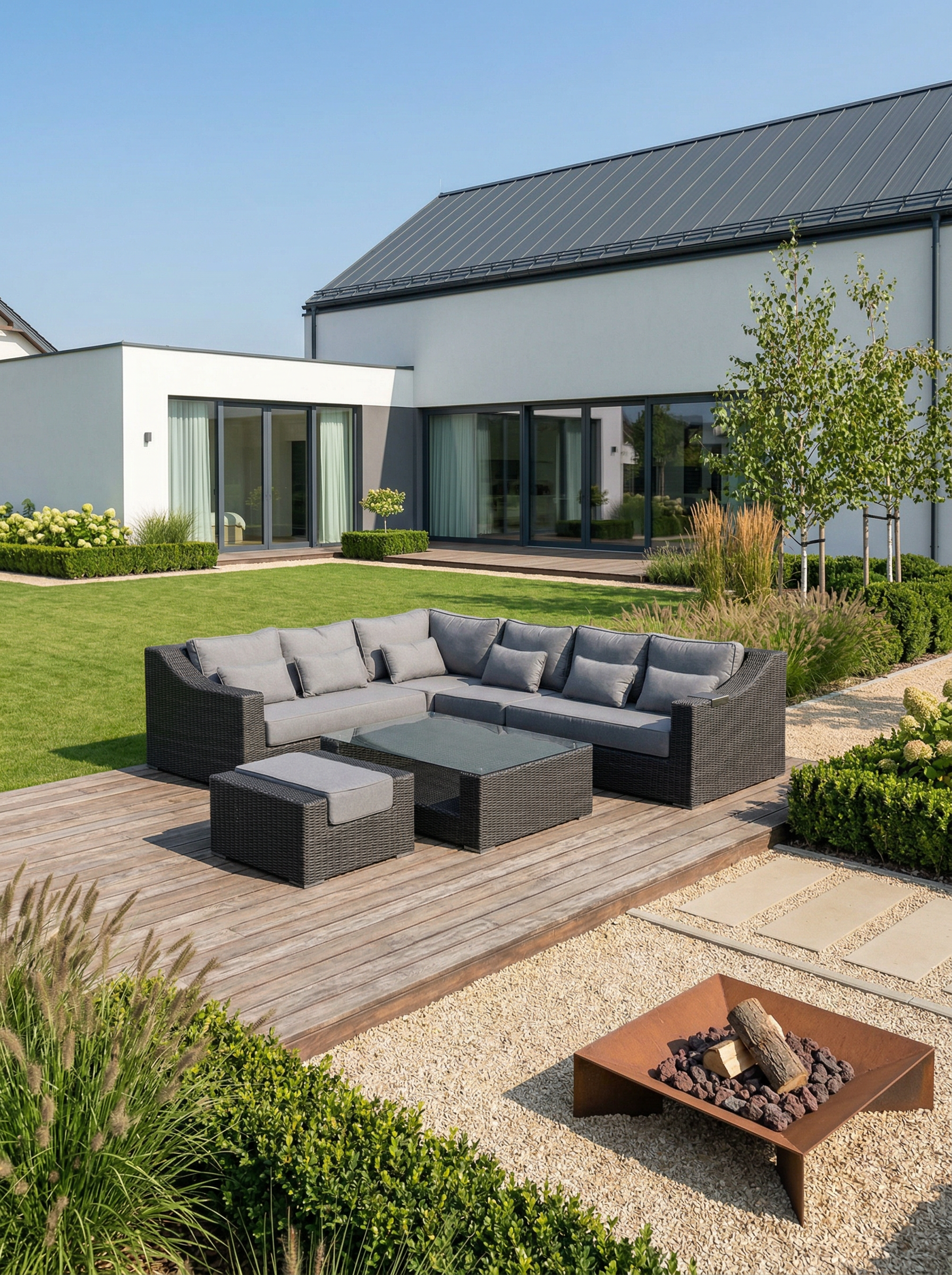 | Komplekto dalys | Dešininė dalis, Kairinė dalis, Kampinė dalis, Pufas, Stalas, Vidurinė dalis |