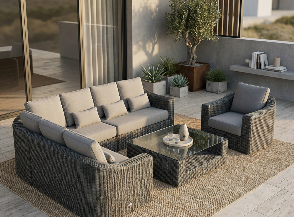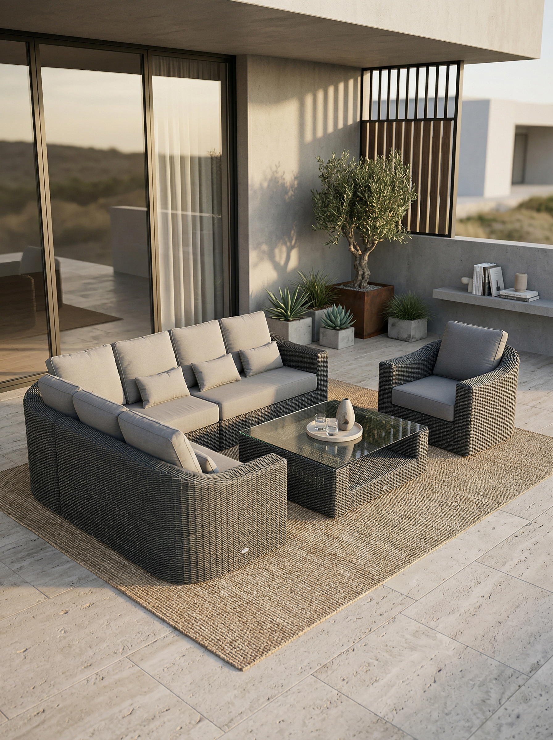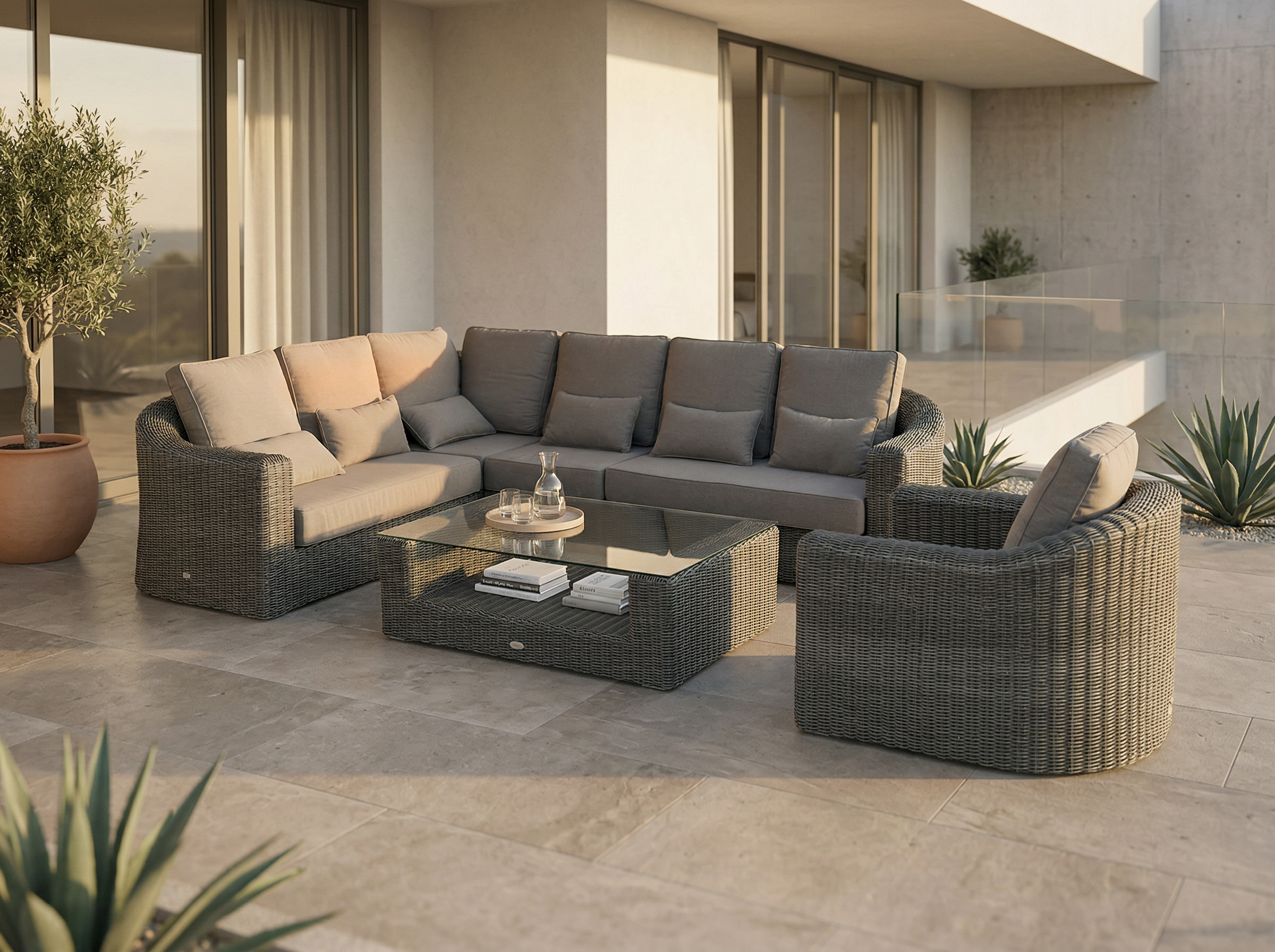 Itin stora 15 cm ir gili sėdima pagalvė užtikrina malonų poilsį. Pagalvių užvilkimus galima skalbti, todėl baldo priežiūra lengva. Vytelė atspari atmosferos poveikiui, t.y gali stovėti lauke ištisus metus. Audinys neperšlampamas ir lengvai valomas. Baldai sudaryti iš atskirų dalių, kurias galima dėlioti pagal poreikį, todėl jie tinka įvairioms terasoms. Yra jungtys, kurios jungia dalis, todėl baldai visada tvarkingi.