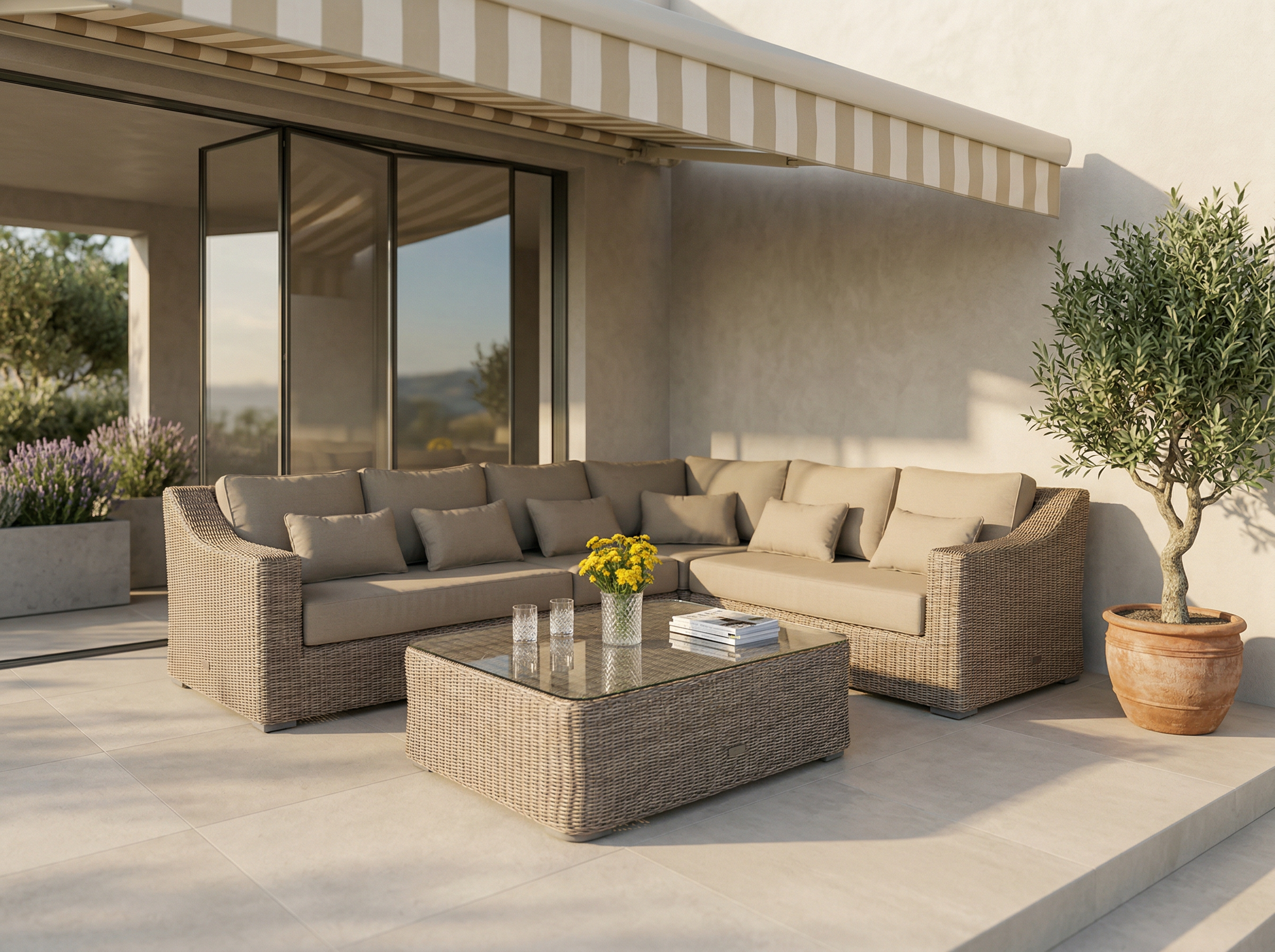 Itin stora 15 cm ir gili sėdima pagalvė užtikrina malonų poilsį. Pagalvių užvilkimus galima skalbti, todėl baldo priežiūra lengva. Vytelė atspari atmosferos poveikiui, t.y gali stovėti lauke ištisus metus. Audinys neperšlampamas ir lengvai valomas. Baldai sudaryti iš atskirų dalių, kurias galima dėlioti pagal poreikį, todėl jie tinka įvairioms terasoms. Yra jungtys, kurios jungia dalis, todėl baldai visada tvarkingi.